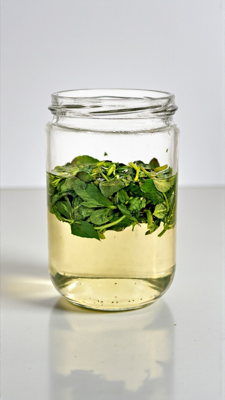●Cam bir kavanoza sıcakken şurubu aktarıp içine iri iri doğranmış taze naneleri yerleştirip bir kaşık yardımıyla karıştırıyoruz