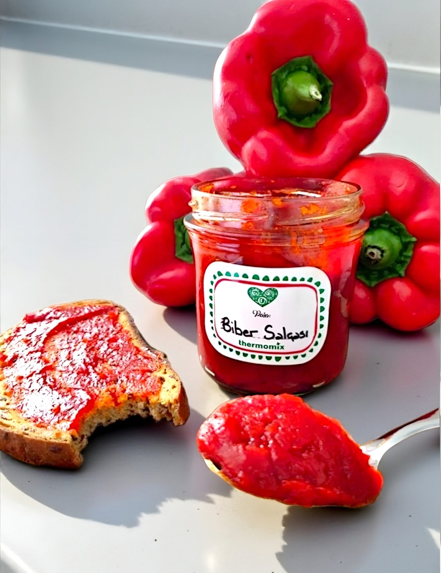 Herkese merhaba,uzun zamandır yapmak istediğim bir tarifti biber salçası.Bugun 1 kilo gibi bir miktarla denedim.Her ayrıntısını yazdım,her 10 dakikada bir neredeyse kapağı açıp nasil gidiyor diye baktım ne taşma ne dibi tutma gibi şeyler yaşamadan cok şükür harika bir biber salçası elde ettim.Tüm tarifi kendim yazıp thermomixe uyarladım,umarım sizde beğenirsiniz