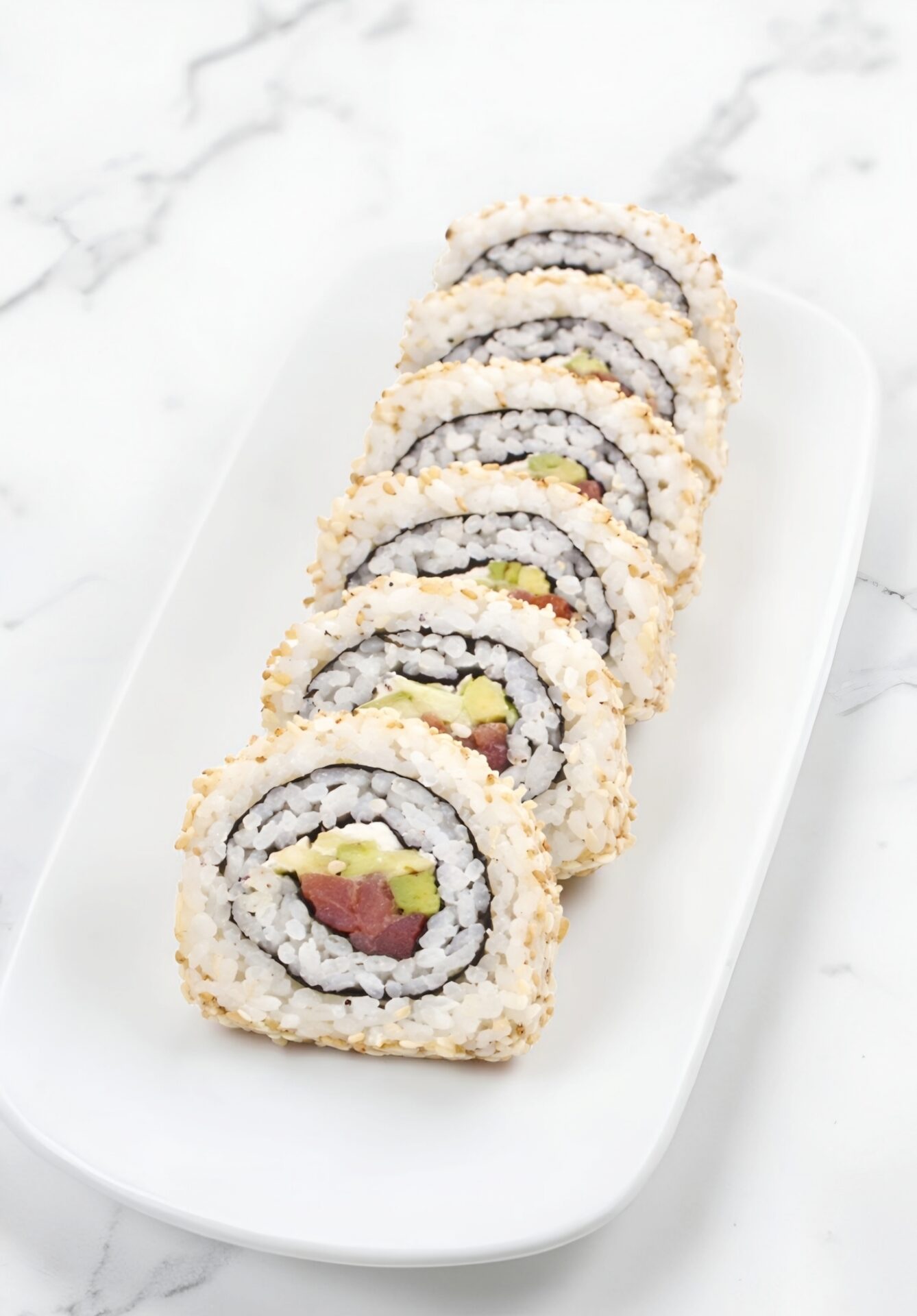 *Bir tabağın üzerine susam serpip sushi roll’un tüm dış yüzeyini susamla kaplıyoruz
